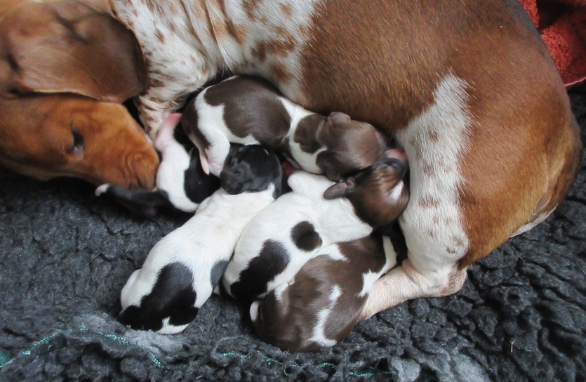 Het eerste Mibaf'sHoeve Pie nestje is een feit , Tinker is op 10 februari 2025 bevallen van 4 reutjes en 1 teefje